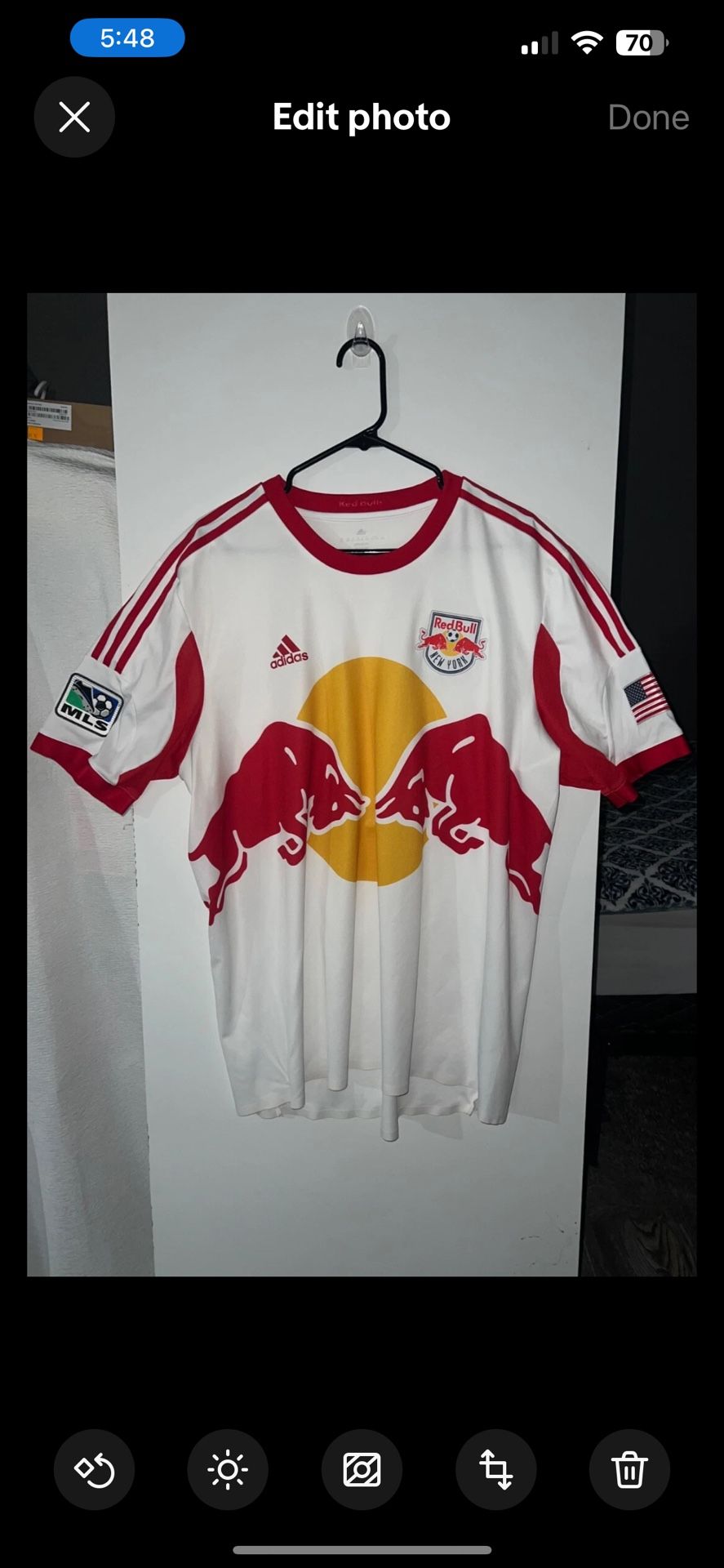 New York Red Bull Jersey BARKLAGE 25 MLS USA Flag short sleeve size 2XL Red Bull In great pre owned condition