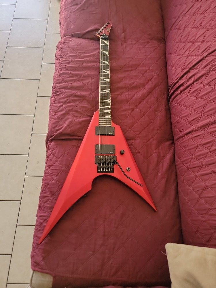 CONSTRUCTION. Neck-Thru SCALE. 25.5" BODY. Mahogany NECK. 3Pc Maple FINGERBOARD. Macassar Ebony FRETS/TYPE. 24 XJ Stainless Steel HARDWARE COLOR. Black TUNERS. Grover BRIDGE. Floyd Rose 1000SE NECK PU. EMG 85 BRIDGE PU. EMG 81 Used condition, since it's a Satin finish it had buff spots on it. Neck pickup isn't functioning properly. Either it's disconnected or fried.