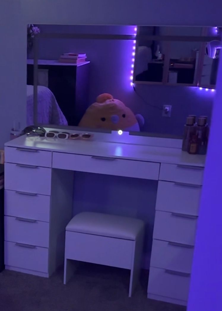 **IMPORTANT** I bought two vanity table the first one with a regular tabletop (initial price $269) which is the one I’m trying to sell I put it together and a day later I saw the same company had another one with a glass top ($329) which I preferred (last 3 photos) so I took down the first one and put it back in the box. There are screw on marks ($60 discount), but the table was only up for two days Vanity Desk Set with Large LED Lighted Mirror & Power Outlet, Makeup Vanity Table with 11 Drawers and Magnifying Glass, 46" Vanity with Storage Bench for Bedroom