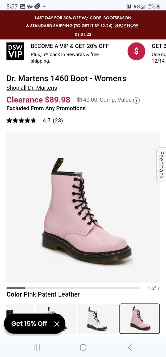 New.Size 9. Item # 499511 UPC # (contact info removed)6 FEATURES Leather upper Lace-up closure Round toe Leather lining Cushioned footbed Approx. 6" shaft height Approx. 10" leg opening ¾" platform, 1¼" molded heel AirWair™ slip & oil resistant lug sole Imported The iconic 1460 8-eye combat boot from Dr. Martens allows you to embrace your inner rebel. With a Goodyear Welt construction for enhanced comfort and durability, this rugged boot upgrades your style.