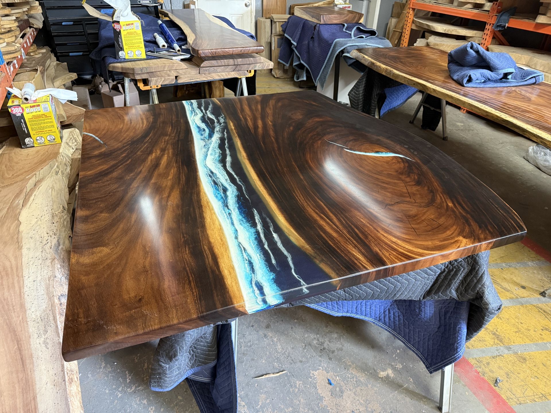 Hello, Come by our showroom to custom build your piece today. We do it all..... Dining Tables, Countertops, Kitchen Islands, Floating Shelves, Conferences Tables, Bar Tops and much more! If you can not come by we offer virtual appointments. All of our exotic hardwoods have been kiln dried, fed through a wide belt sander at 100 grit and leveled. We sell by the slab at $30 per board foot raw and an additional $20-$50+ per board foot to finish. Everything is customizable... message for quote ! 👌 All of the photos in the AD are examples of previous projects we have completed. Ask about our epoxy resin work! We specialize in river tables. Thank you, Exotic Live Edge Slabs Veteran Owned and Family Operated! We are located at 700 NE 42nd St Deerfield Beach, FL 33064 954-851-4988 Mon-Sat 8am-3pm www.exoticliveedgeslabs.com