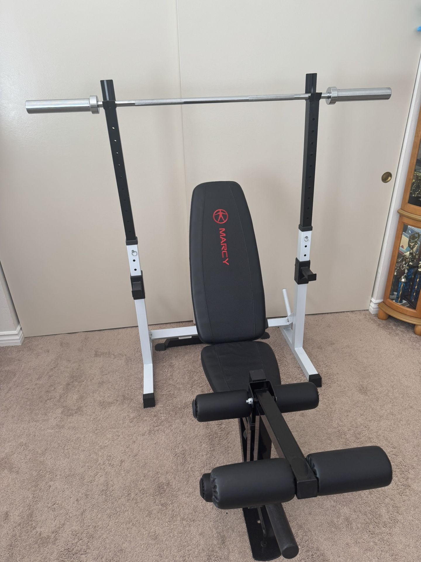 Adjustable Bench Press/incline and Squart Rack, Adjustable With 25lb Free Weights. You can purchase separately or together. Bench press is $60 and Squat rack is $65. Free weights $20 each