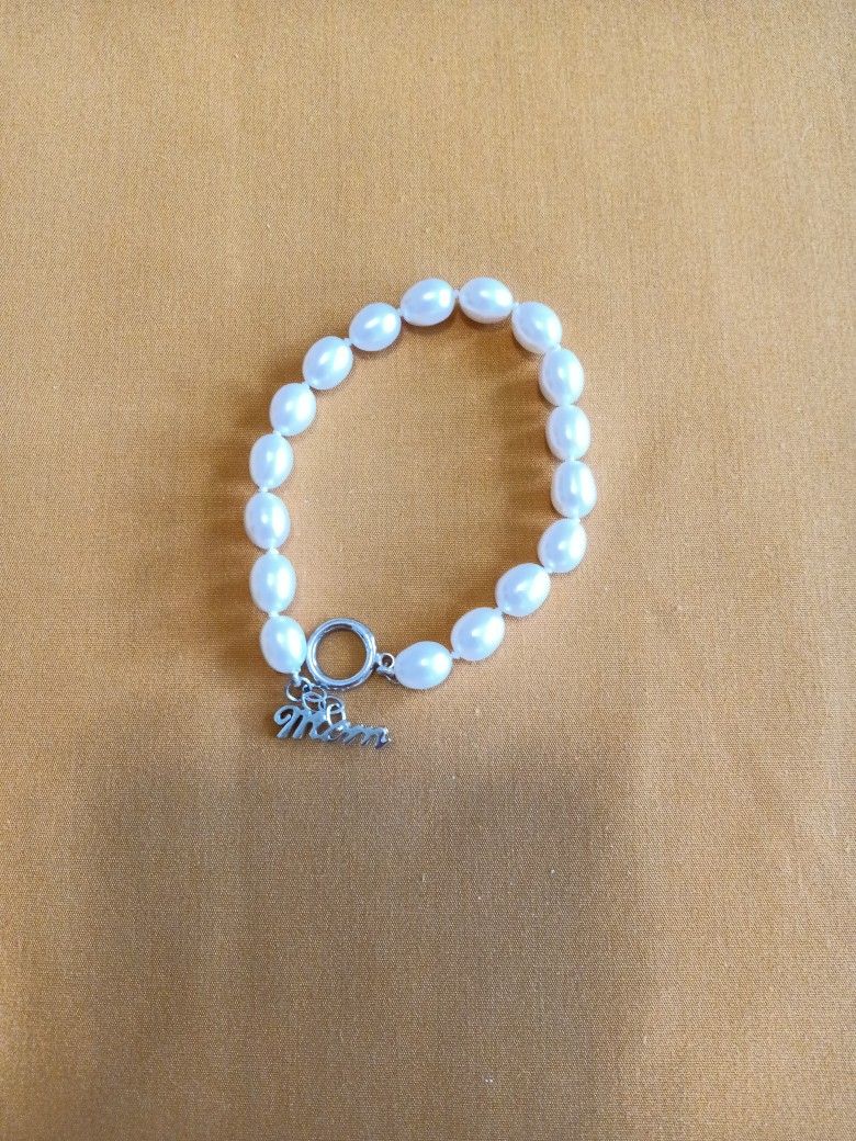 8 inch Pearl Mom Bracelet with Silver Claps.