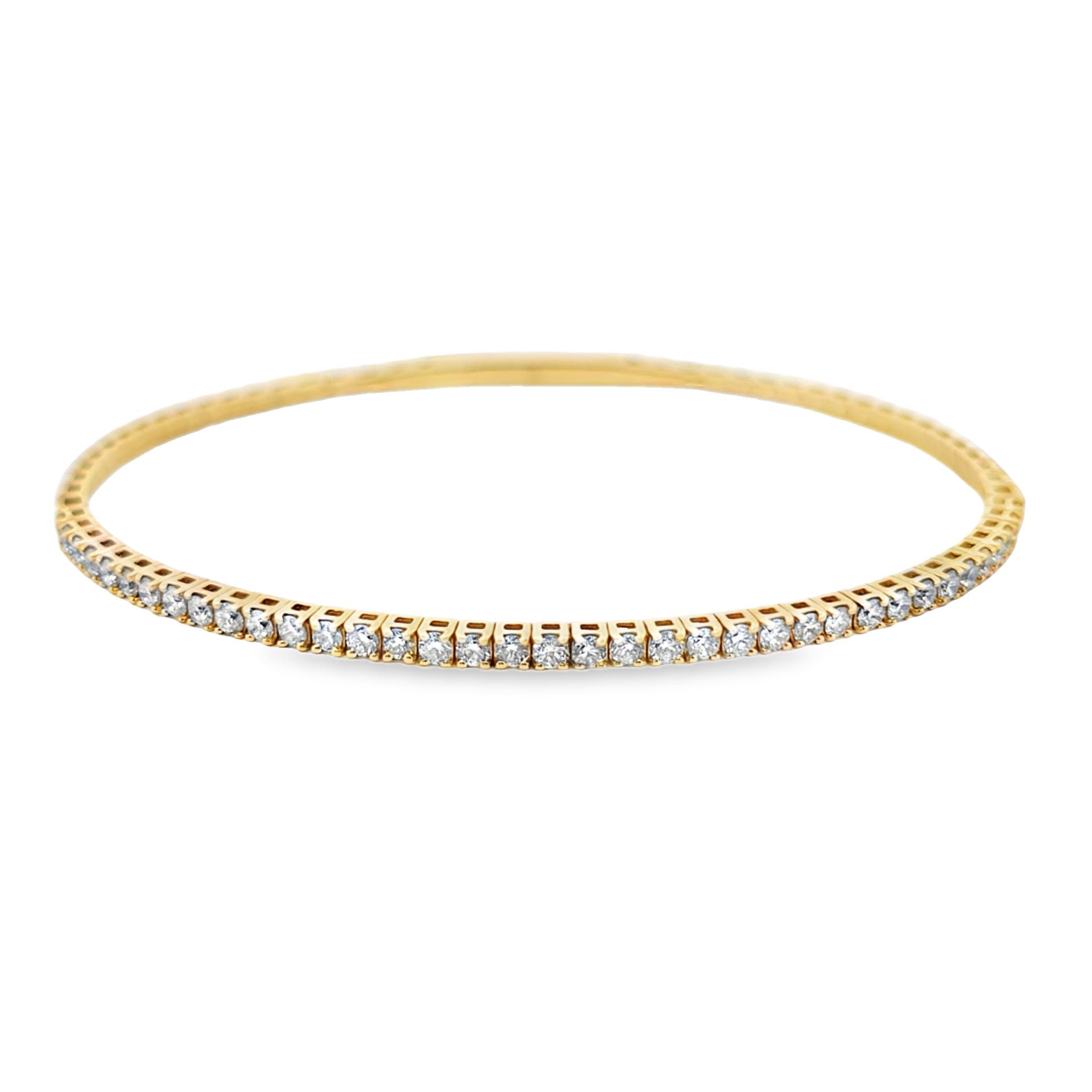 Embrace timeless sophistication with this exquisite yellow gold tennis bracelet. The bracelet features a continuous stream of round brilliant cut diamonds, each meticulously set to maximize sparkle and fire. The secure clasp ensures a comfortable and confident fit, making it a perfect accessory for both everyday elegance and special occasions.