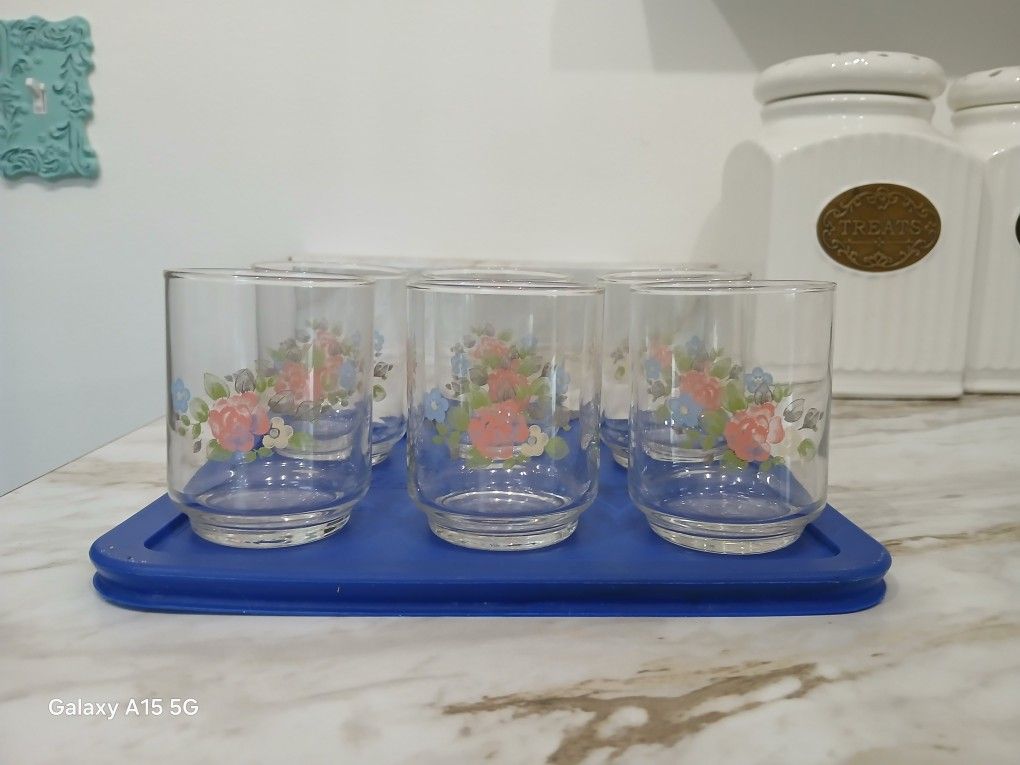 Set Of 6 juice glasses in the Tea Rose design. Never used.