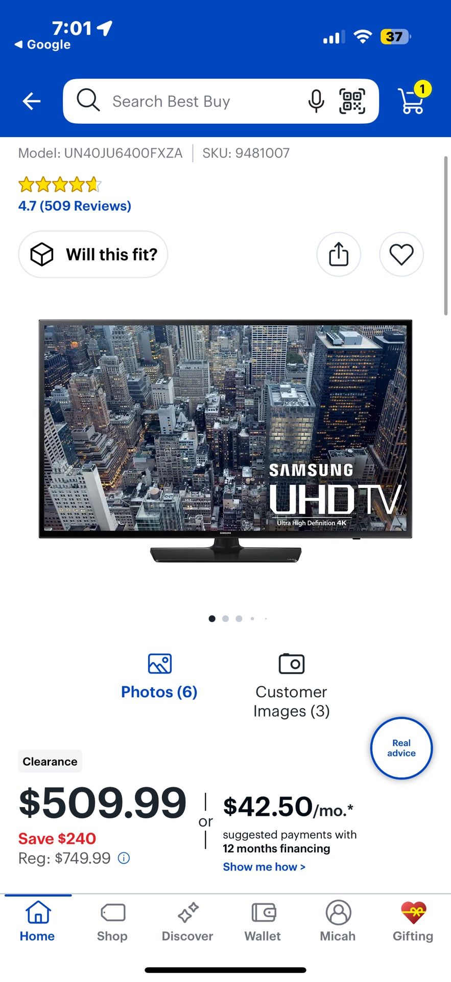 Retail: 650$ Asking for 250$ Hey! I’m selling a Samsung 40” 4K UHD Smart TV in excellent condition. It has a crisp display, built-in streaming apps, and multiple HDMI/USB ports. . Let me know if you’re interested or have any questions!