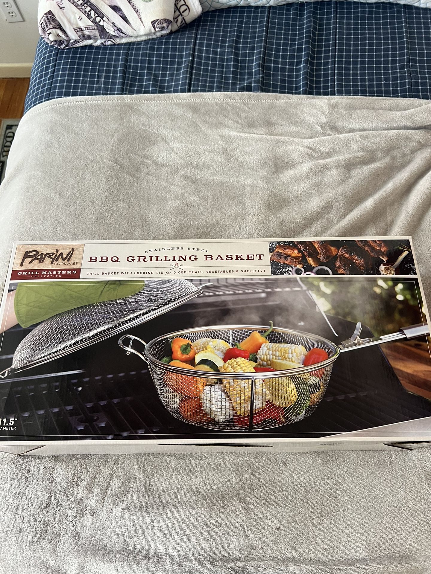 NEW Parini Stainless Steel BBQ Grilling Basket With Locking Lid