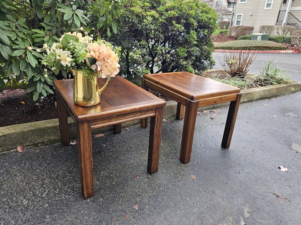 Brand: Lane Furniture Origin: Virginia, USA; 1970s Length: 26 inches Depth: 20 inches Height: 20 inches Vintage Lane Furniture mid century modern brown walnut wood side tables, night stands, end tables or bedside tables for sale. Everything is in great condition with no scratches, dings, dents or damage. Everything is solid and sturdy. Free delivery included for up to 30 miles, extra beyond that. I would just need a little help unloading it. I can help move it up or down stairs for free also. Cash only please. Message me with questions - - (You can let me know if you need more furniture or have excess furniture you want hauled away) About me: My name is Stephen and I've been refinishing, restoring and repairing wood furniture since 2013. It's my goal to master the craft of furniture refinishing and to meet or exceed the expectations of my customers. My business provides a way of giving new life to older good quality wood furniture when possible, making the world a more beautiful place and saving trees. In the rare case I fail to live up to my standards, please reach out to me and I'll be more than happy to find a solution for you. Note: These are all older pieces of furniture and there will be at least a few minor signs of age. Note: - All pieces will have a protective but not indestructible finish. - All pieces can be cleaned with a damp undyed cloth with or without mild soap and must be dried immediately to prevent marks from forming. - Protect surfaces from incidental marks and scratches by using coasters, felt pads, and soft mats. Never place hot dishes or equipment directly on wood surfaces. - Always lift your wood furniture when moving it. Do not drag your furniture, as this could loosen joinery and cause damage. - Avoid placing indoor furniture in direct sunlight or near sources of heat or moisture, as this could cause cracking or changes in finishes. - Do not lean back in chairs and avoid using table pedestals as footrests.