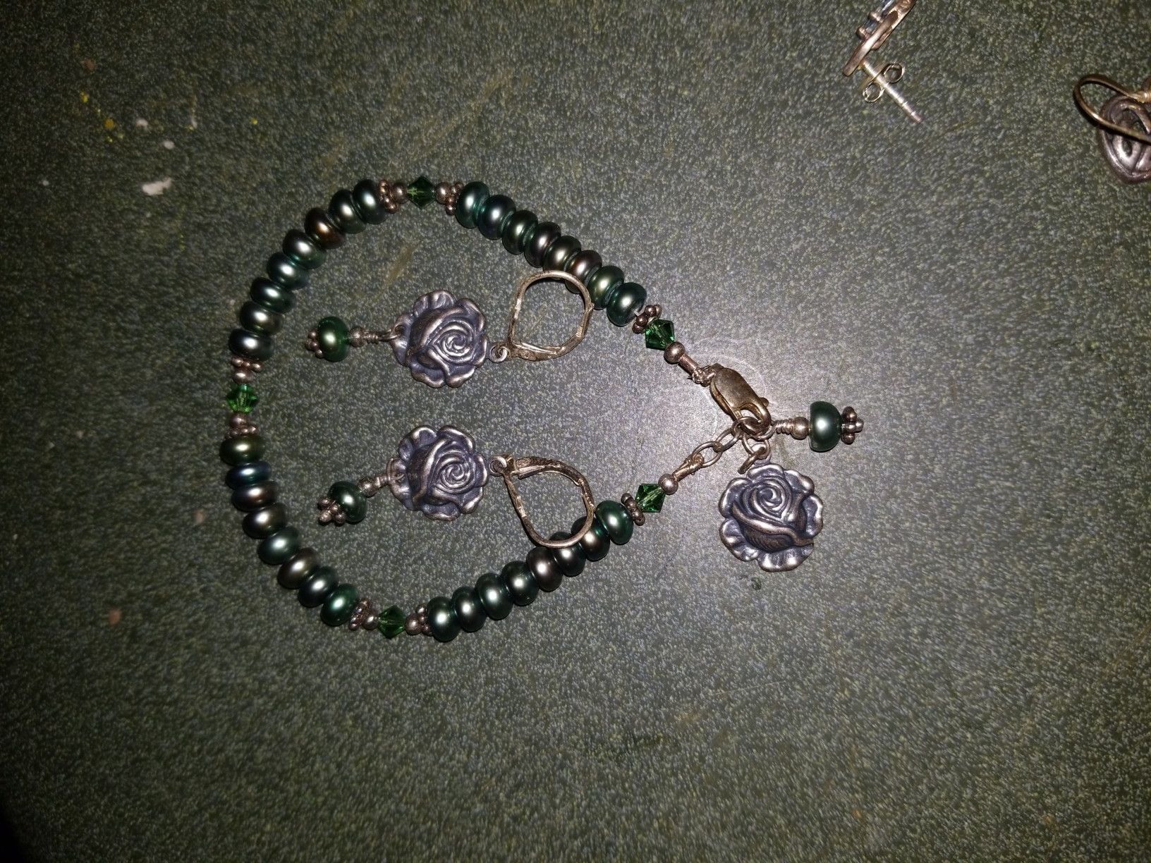 Vintage rare pearl and .925 rose bracelet and earring set