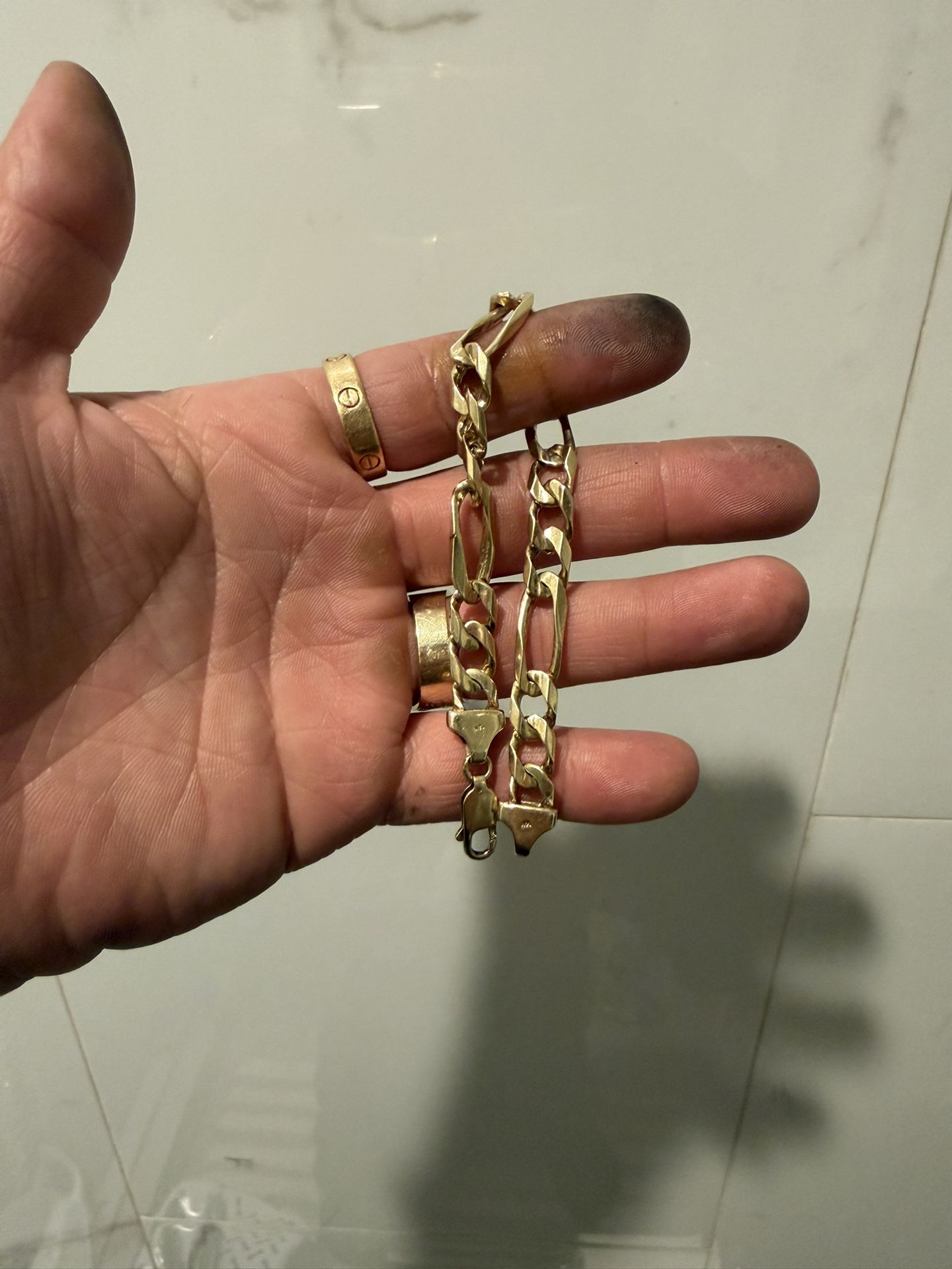 Super solid 30 grams Figaro link Stamped 14k solid gold Nice big clasp Can do acid test and scale when we meet OPEN TO TRADES FOR CUBAN LINK OR DIAMOND RINGS OR WHITE GOLD