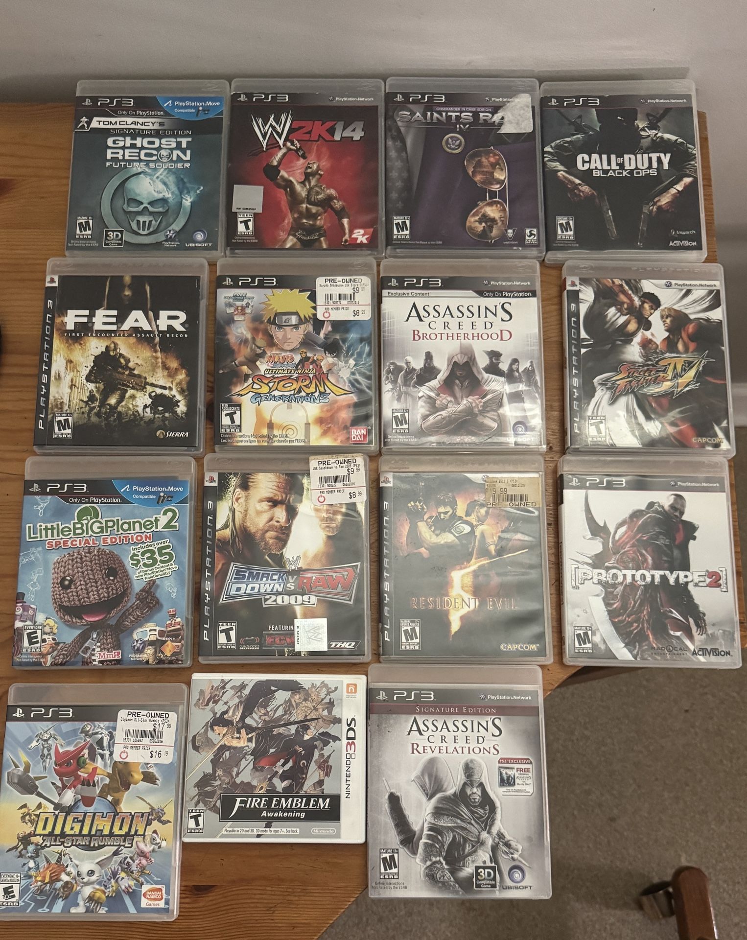 Ps3 Games:$4 each, $40 if you buy all fire emblem 3ds:20$