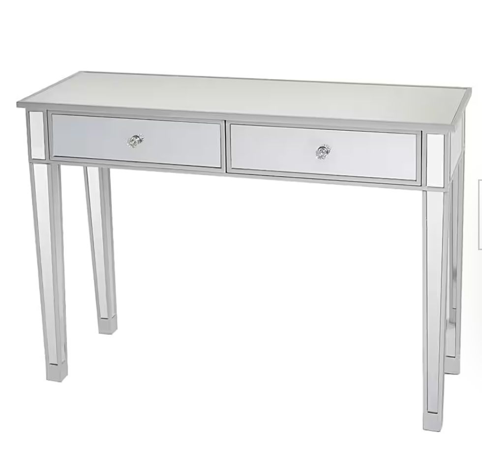 Silver Mirrored Makeup Table Desk Vanity Tables for Women with 2-Drawers