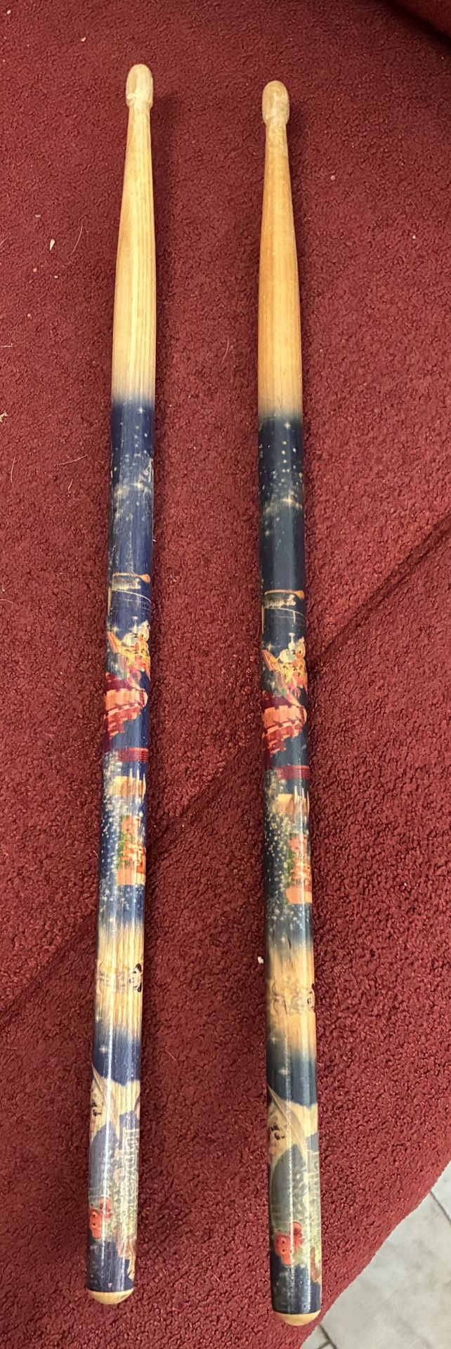Drum sticks are all wood. Colorful. I’m on the east side.