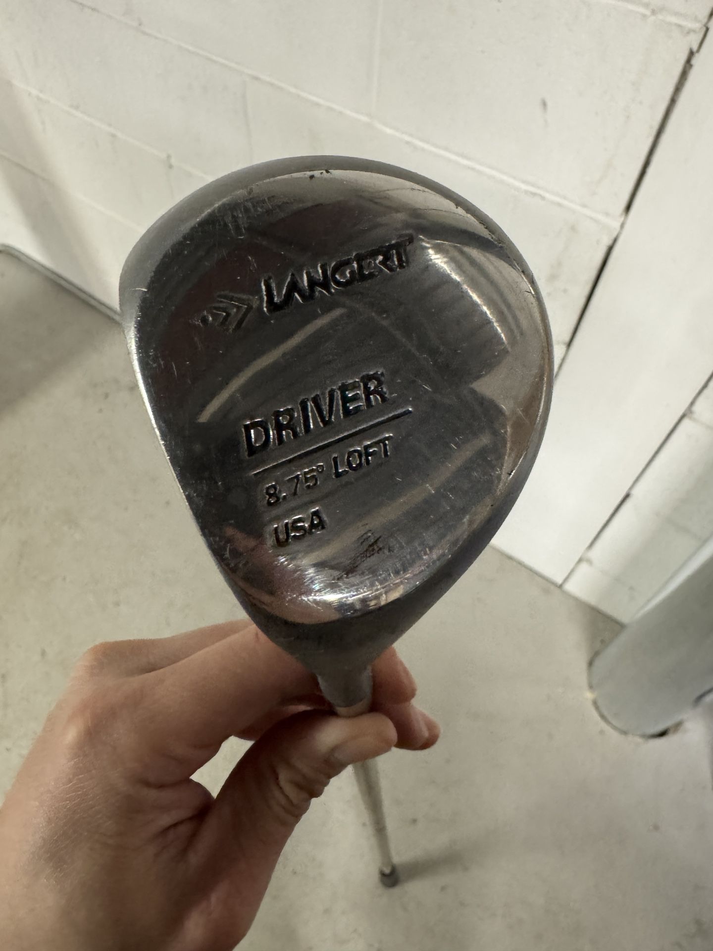Brand: Langert Model: Often listed as Tour De Force, though the head explicitly marks it as "DRIVER". Loft: 8.75°. Head Material: Steel. Shaft Options: Common pairings include Fenwick graphite or Apollo steel shafts.