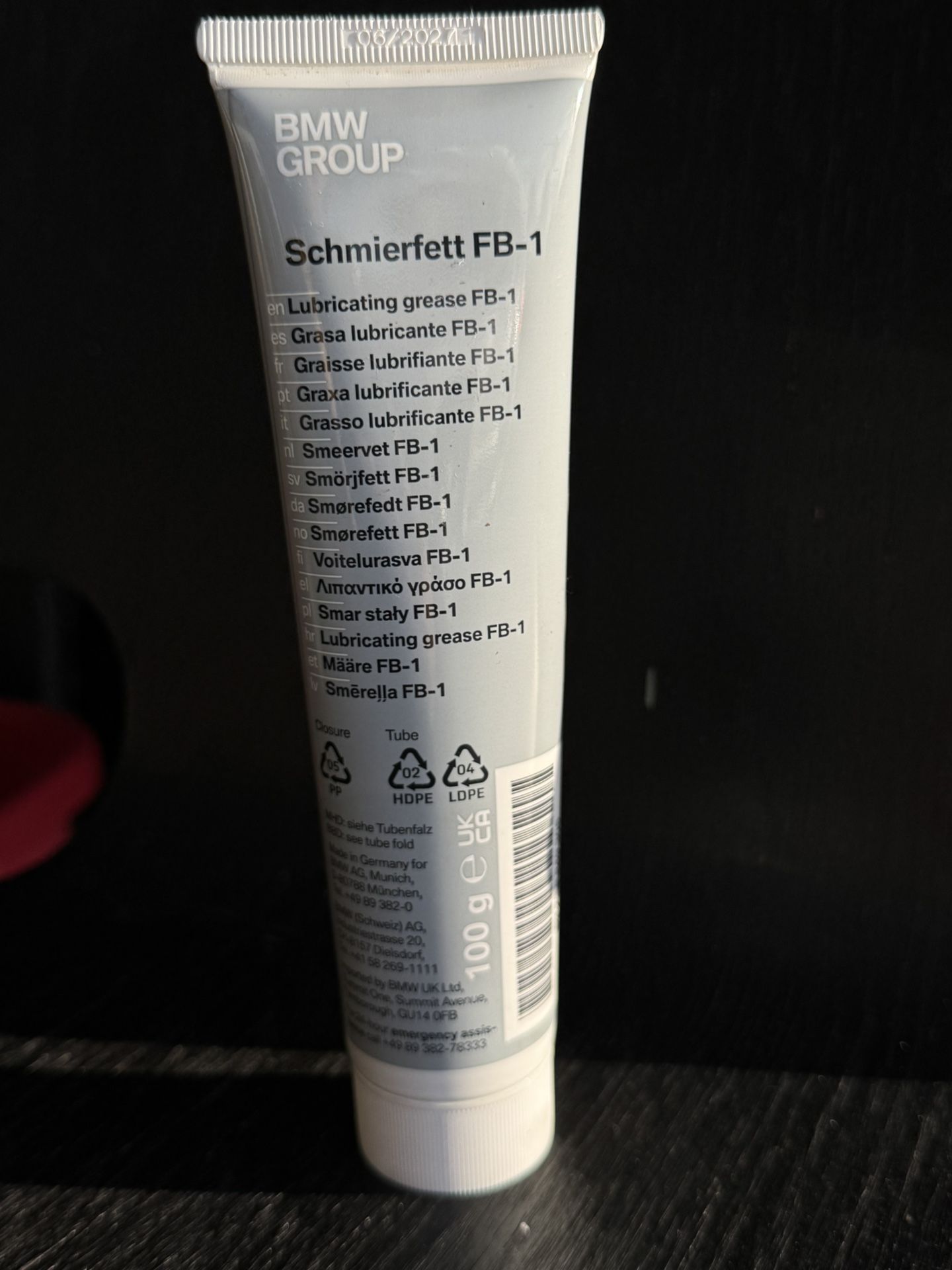 Original BMW Group product High-performance multipurpose grease FB-1 Protects against wear, friction and moisture Safe for plastics and rubber Tube size: 100 g Made in Germany Condition: New / Sealed.