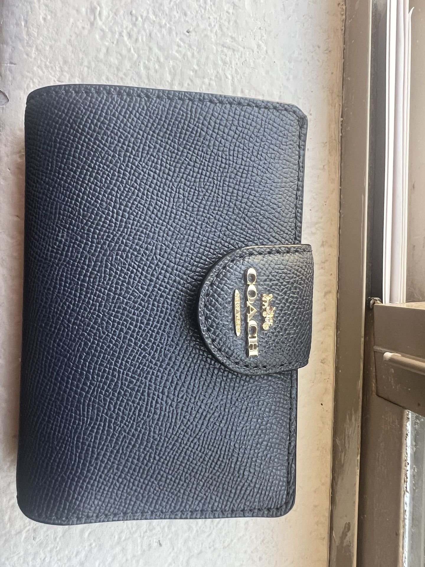 Length: 5.0" Height: 3.5" Width: 0.5" Crossgrain leather Zip coin pocket Seven credit card slots Snap closure Used but in great condition no noticeable flaws
