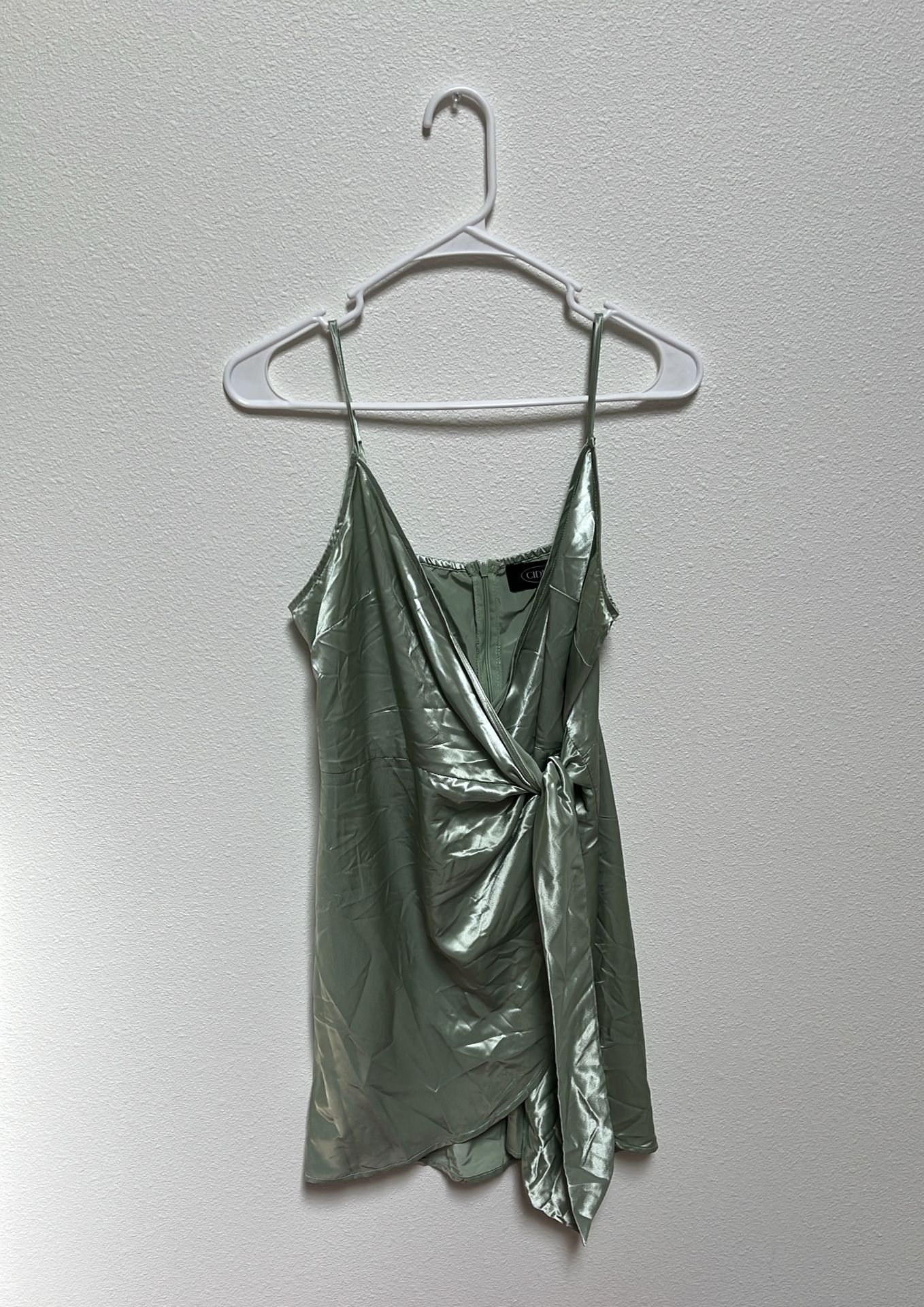 Green satin spaghetti straps wrapped around dress Green satin spaghetti straps wrapped around dress