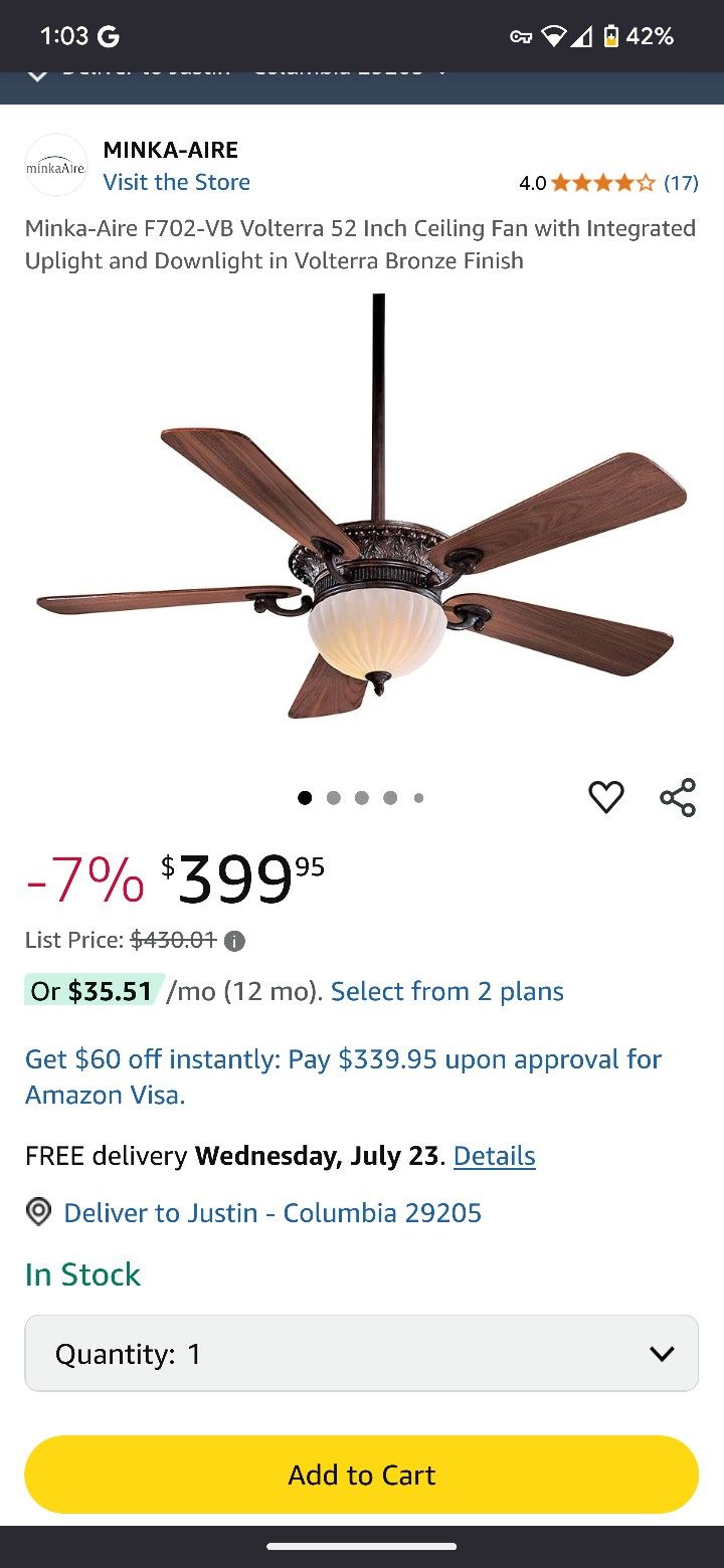 New In Box Minka-aire F702-VB Ceiling Fan