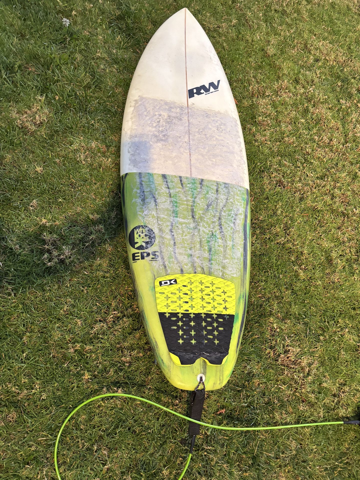 6’1.5” Long 22-7/8 wide 3” thick Hardly used RW Surfboard.
