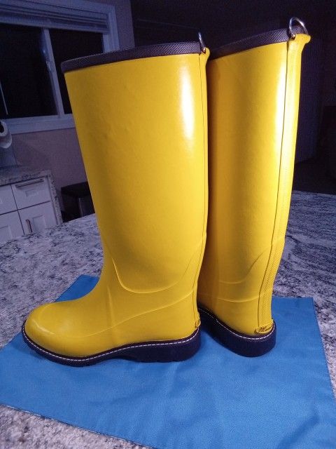 Maniera Handmade Women's Yellow Rubber Boots Knee-high Size 7