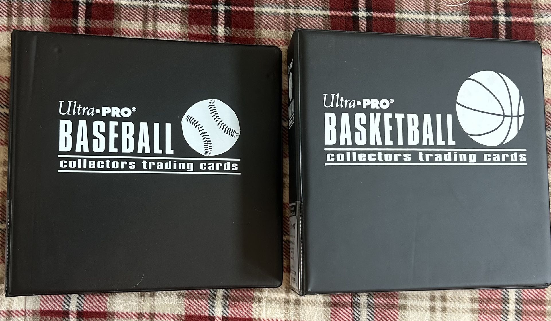 (2) Ultra Pro 3” Baseball and Basketball High Quality Padded Card Albums - Hi Stamp Foil on Black Cover - Reinforced 3@ D Ring with booster for a quick loading of pages - Rated two withstand 10°F for a cold cracking - Indexing slot on the spine for easy organization