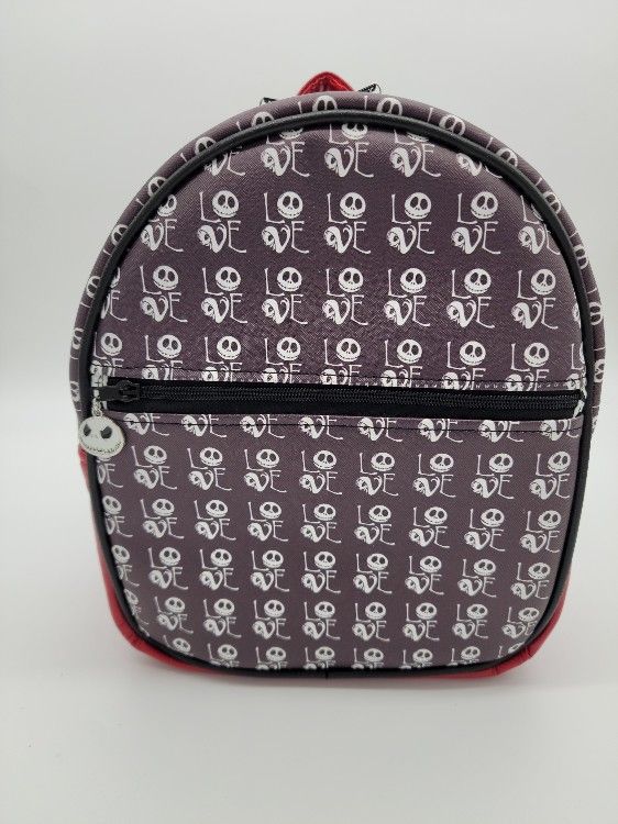 I custom make bags and wallets. This bag is nightmare before Christmas vinyl and red patch vinyl on the back. This bag measures 12x10x5. It has two zipper pockets outside and one zipper pocket and one open pocket inside. Inside the bag is waterproof canvas. All my items are made in a smoke and pet free shop.