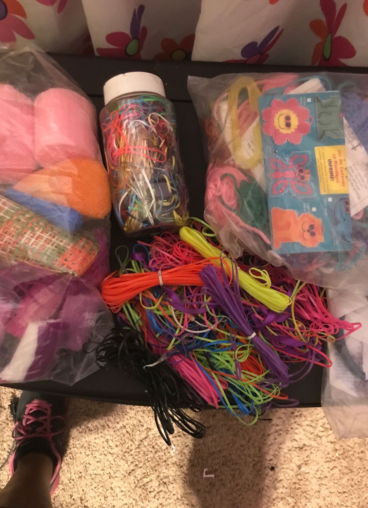 Large variety of strings n things! Plastic strings, latch hook yarn, needle crafts and more Great for the young students into crafts!