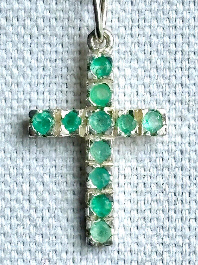 Genuine Colombian emerald pendant , cross pendant, silver 925, real natural emerald, colombian art, muzo emeralds