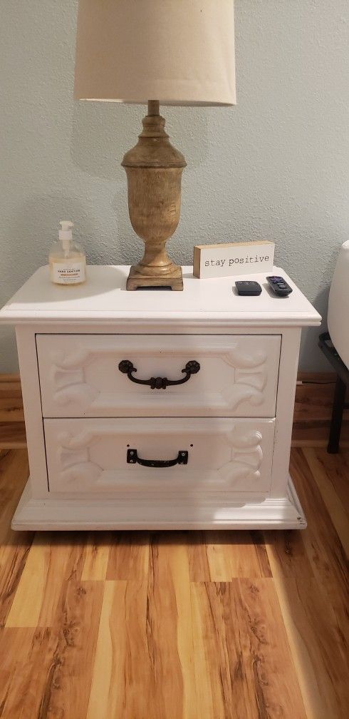 2 white nightstands 1 white armoire. In really good condition. The only reason I'm needing to sell im moving.