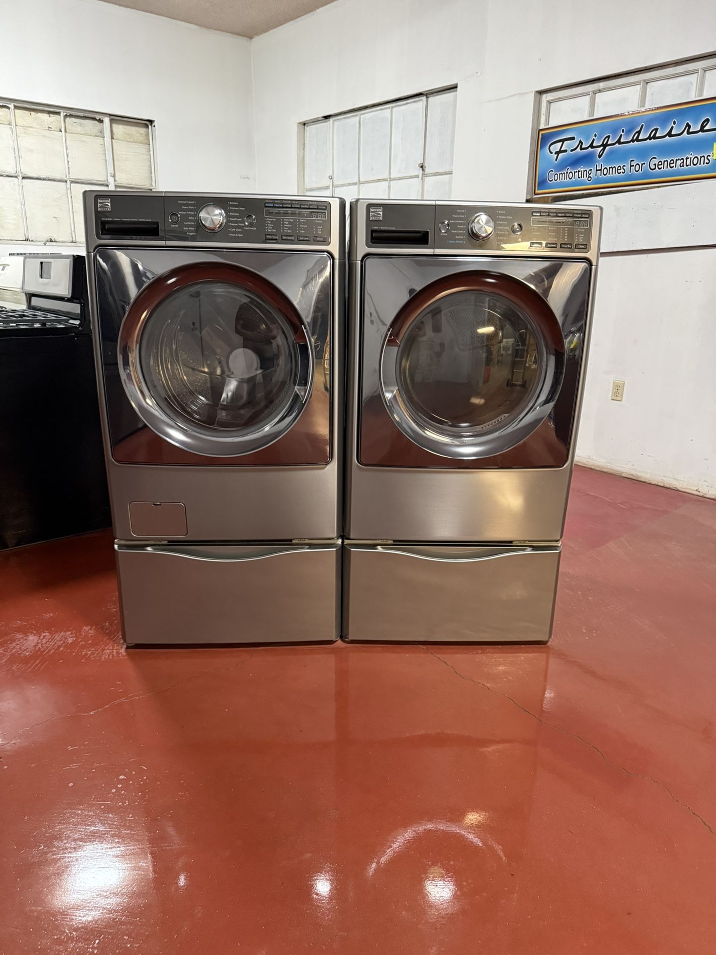 Set of washer machine kenmore and gas dryer. In perfect conditions and works perfectly. Washer machine capacity of 4.5 and dryer capacity 7.4. Deliver to your home and installation with three month warranty.