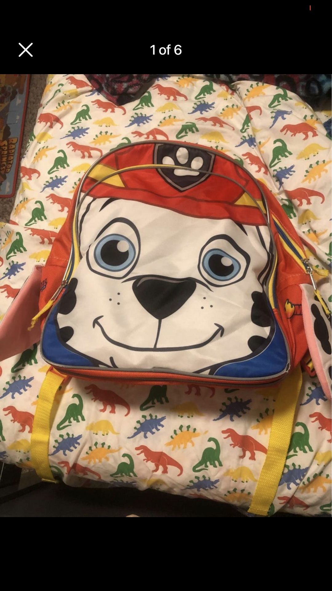 Kids size backpack Marshall from Paw Patrol Flipeez backpack, there’s a hand pump on the straps, and it flips up Marshall’s ears on the side, cute!! 2 pockets The yellow hang-up strap broke on one side but could be fixed, otherwise in good shape See less