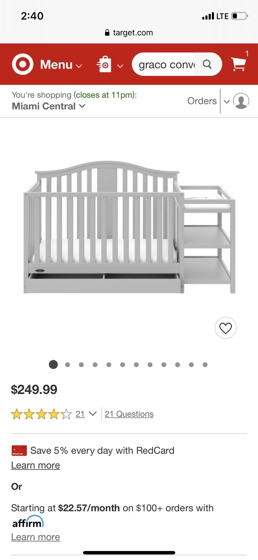 Bought it from Target it’s been used for a year, white and includes mattress and padding for changing table. Will include sheets.