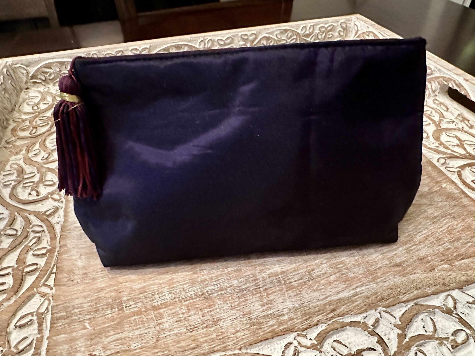 Stunning cosmetic bag. One side is deep navy blue and the other is maroon. Never used comes from a smoke free home.