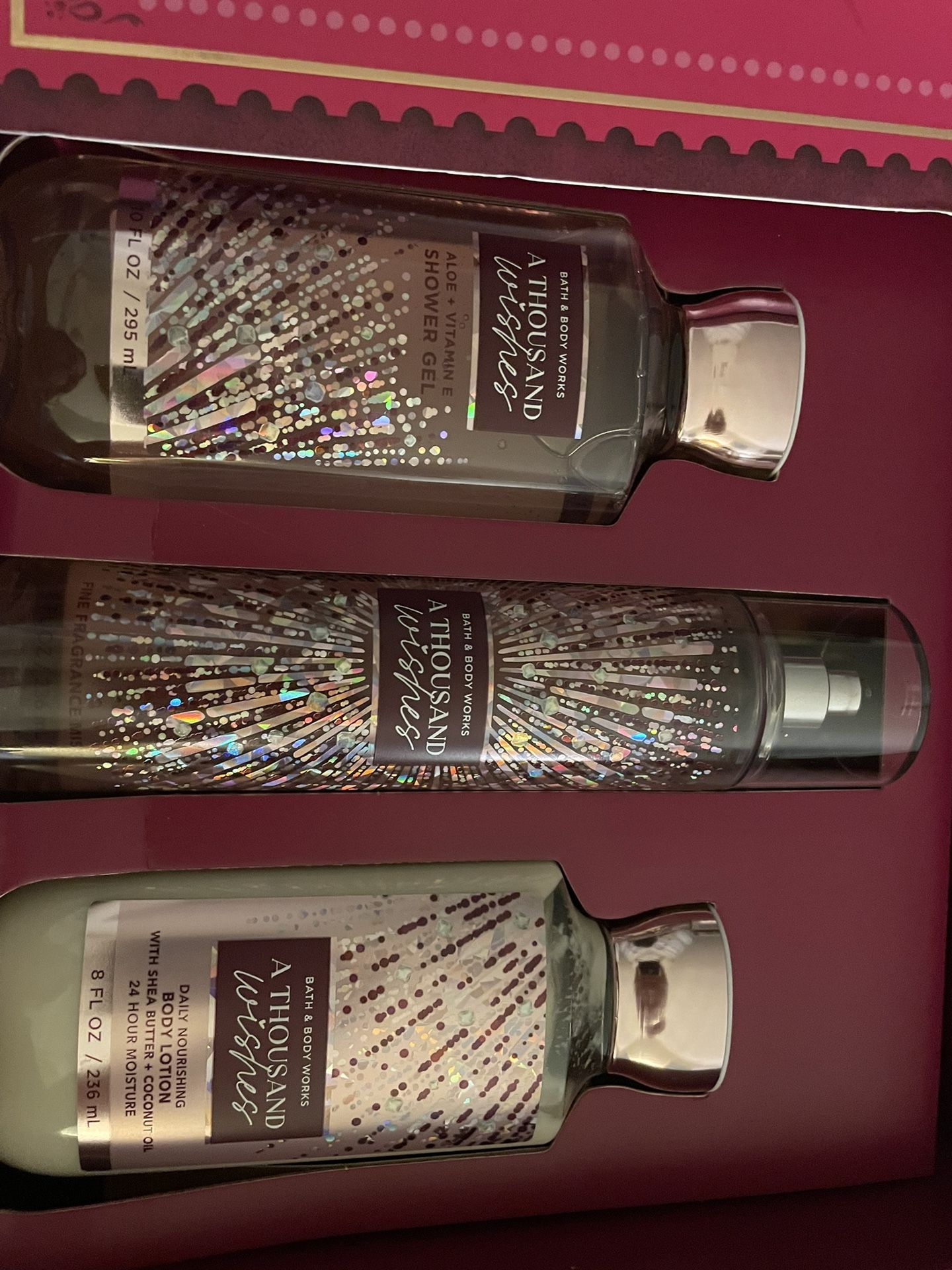 Bed bath and body works “A Thousand Wishes” gift set. Asking $40 or best offer. From a pet and smoke free home