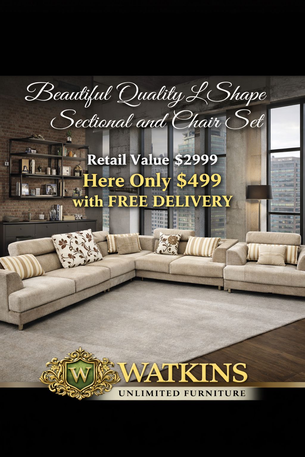 π₯ BEAUTIFUL LARGE L-SHAPED SECTIONAL + CHAIR SET β FREE DELIVERY! π₯