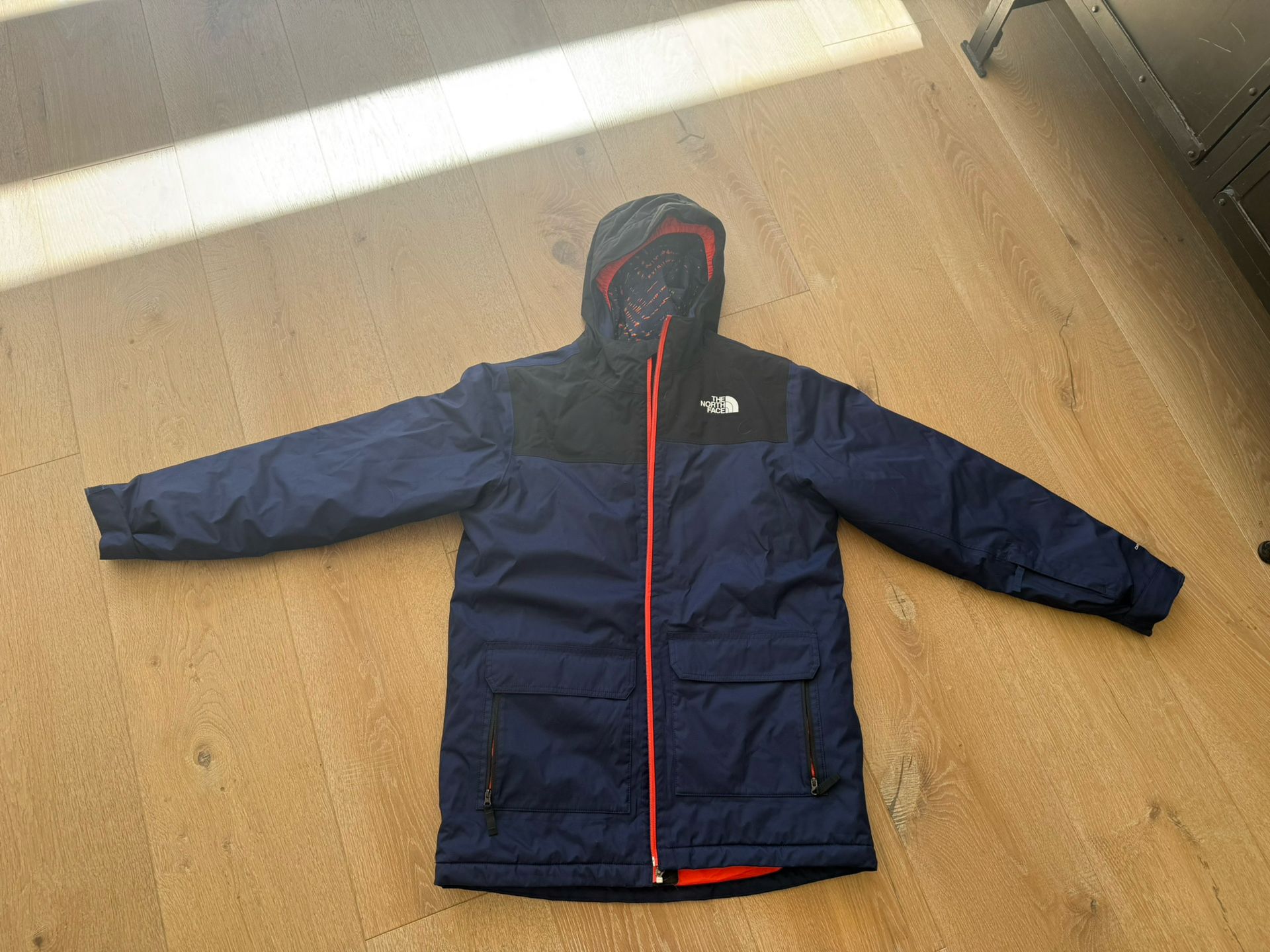 The North Face Youth size XL Navy blue, orange liner Worn once (son outgrew in one season) Perfect condition
