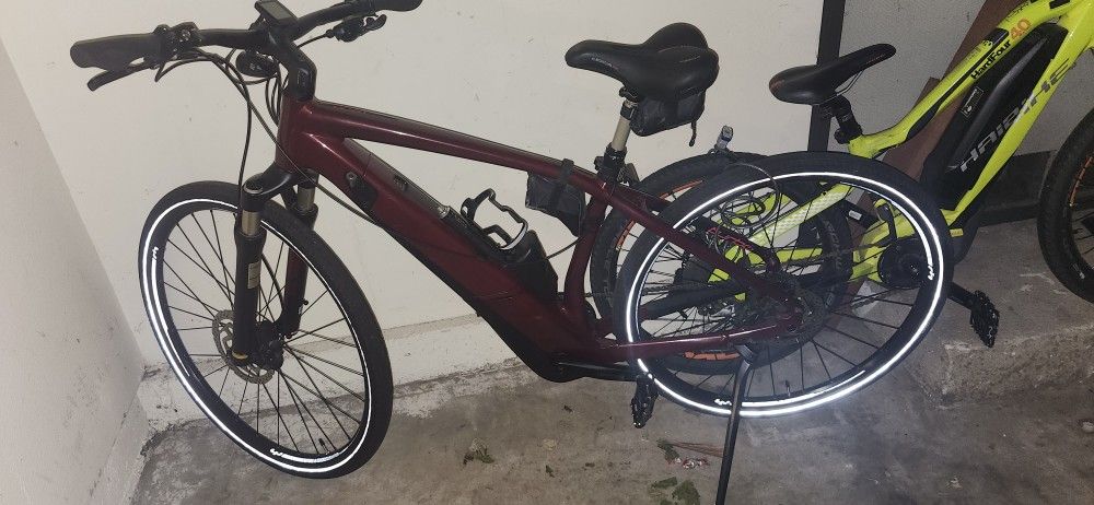 Meduim size frame, with front suspension. In great shape, low 800 miles. I have the fenders just took them cause I like the look. charger included. Front air fork.with lockout and compression adjustment. Fast bike pedal assist speeds up to 30mph Upgraded KS LEV Carbon lever handlebar mounted hydraulic seatpost dropper, SWAT bottle holder system, 2 saddle bags, extra tube, co2, tire change and patch kit, extra chain, park tool inside bags. 2 extra brand new tires included This 4.0 features the most powerful motor and high capacity battery available on a Vado. Fast fun and dependable have a friend who has 12k miles on his and I've been told by bikes shops these have been known to reach 10k plus miles on same motor and battery without maintenance or repair. Lectric aventon surron segway Luna radwagon super 73 co-op cycles ride1up rad power gazelle cannondale trek specialized como vado ibis pivot yeti intense Santa Cruz norco velotric tern