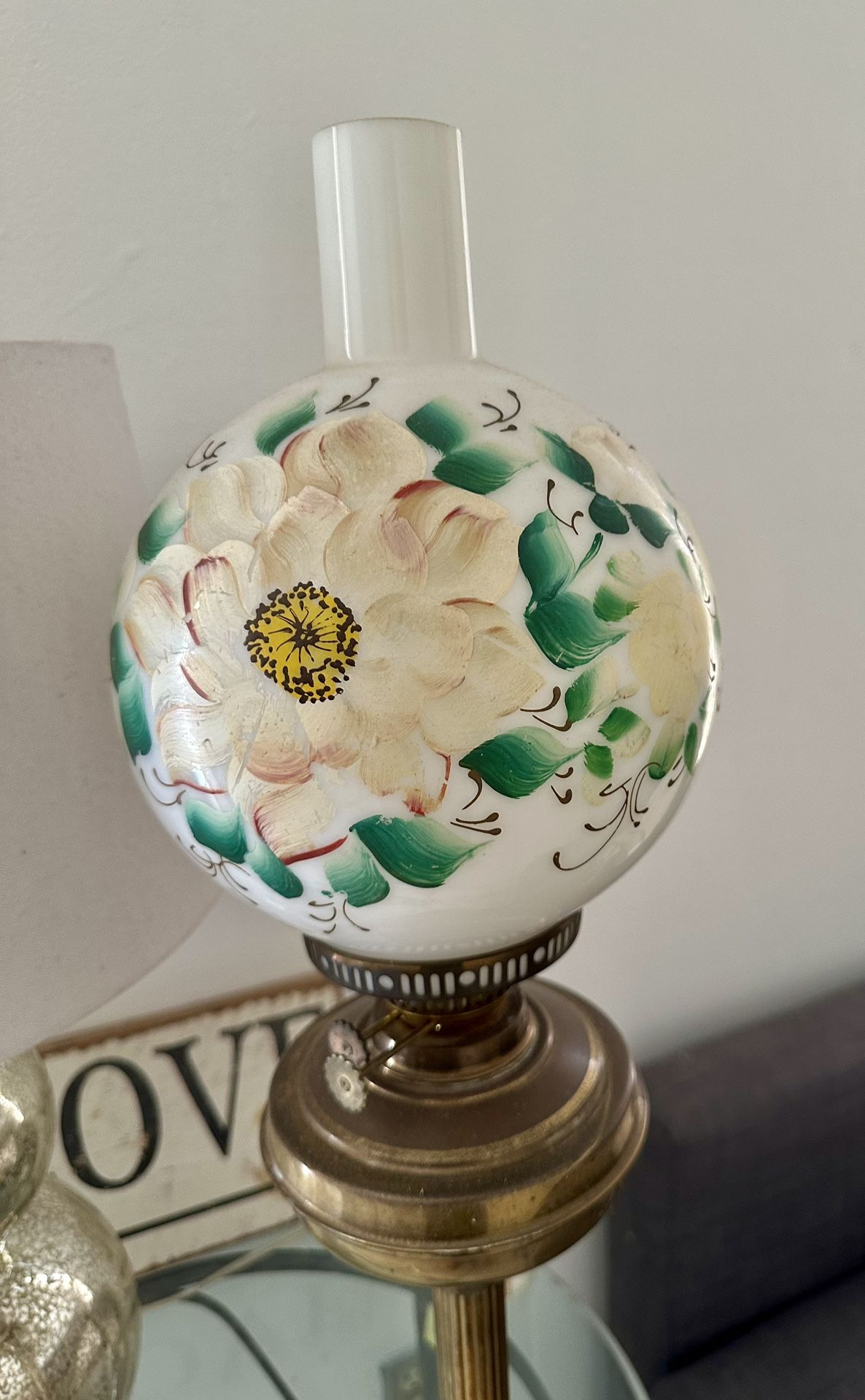 Beautiful 29 inch tall Victorian, parlor oil lamp. Please click on pictures for full view.