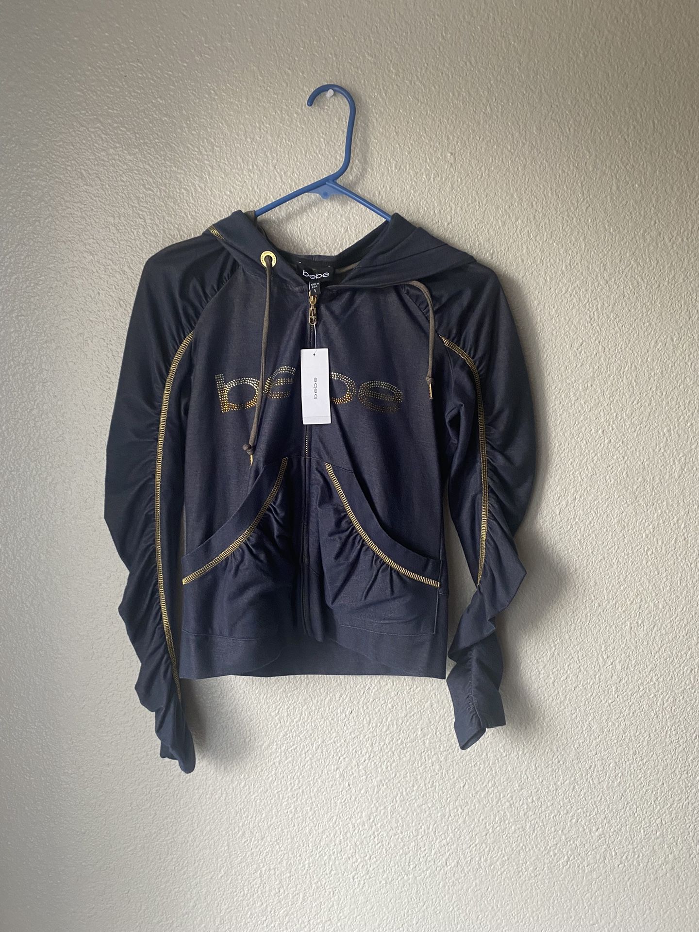 Brand new womans Bebe brand black jacket up for sale Size womans small In brand new condition with tag Looking to sell for cash only Can only meet in Tacoma If you have any questions or offers just ask