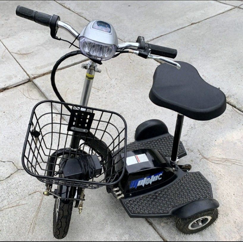 Was over $700 new. New condition, wasn't used much at all. The battery charger is included. The battery isn't charging so may need a new battery. The MotoTec Electric Powered Trike aka Personal Transporter is a three wheel electric scooter that you can ride while sitting or standing, this makes it very convenient for use at events, security and warehouse floor operations or for just plain fun! It’s like a three wheel Segway but at a fraction of the price! Powered by a 500 watt front wheel hub motor with speeds up to 22 miles per hour. It can achieve a 20 plus mile range on a full charge. It features a 16″ pneumatic front tire, two 9″ pneumatic rear tires and a removable seat. This personal transporter is easy-to-operate with a twist throttle and left handle front drum brake system. Comes standard with key, battery meter light, front LED head light and carrying basket. Specs: Motor power: 500 Watt Brushless Hub Motor Battery: Four 12v 12ah Batteries (48v total) Max Weight Capacity: 240 Lbs. Recommened Age: 13 and up Charger Included Battery life: Over 300 charges Rated Speed: 22 MPH (weight dependant) Range per charge: 20-25 Miles* Recharge time: 4-8hrs Climbing Ability: 10 Degrees Seat: Wide Saddle Front Wheel Diameter: 16 inch air filled tires Rear Tires Diameter: 9 inch air filled tires Shipping Weight: 100 lbs Shipping Carton Size: 34x32x20 inches Scooter Weight: 93 Lbs Scooter Dimensions: Length: 41 inches, Width: 28 inches, Height: 50 inches Ground Clearance: 2 inches