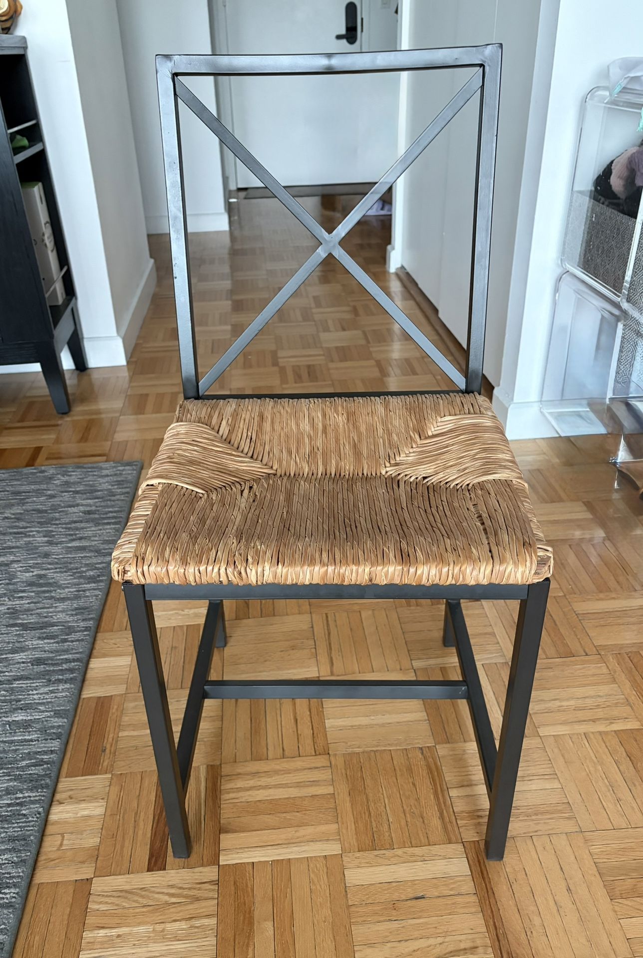 Ikea Granas Metal Dining Chairs with woven seats, set of 4. In great condition! $65 for the set or BO. (4 cushions that sit on top available as well for free)