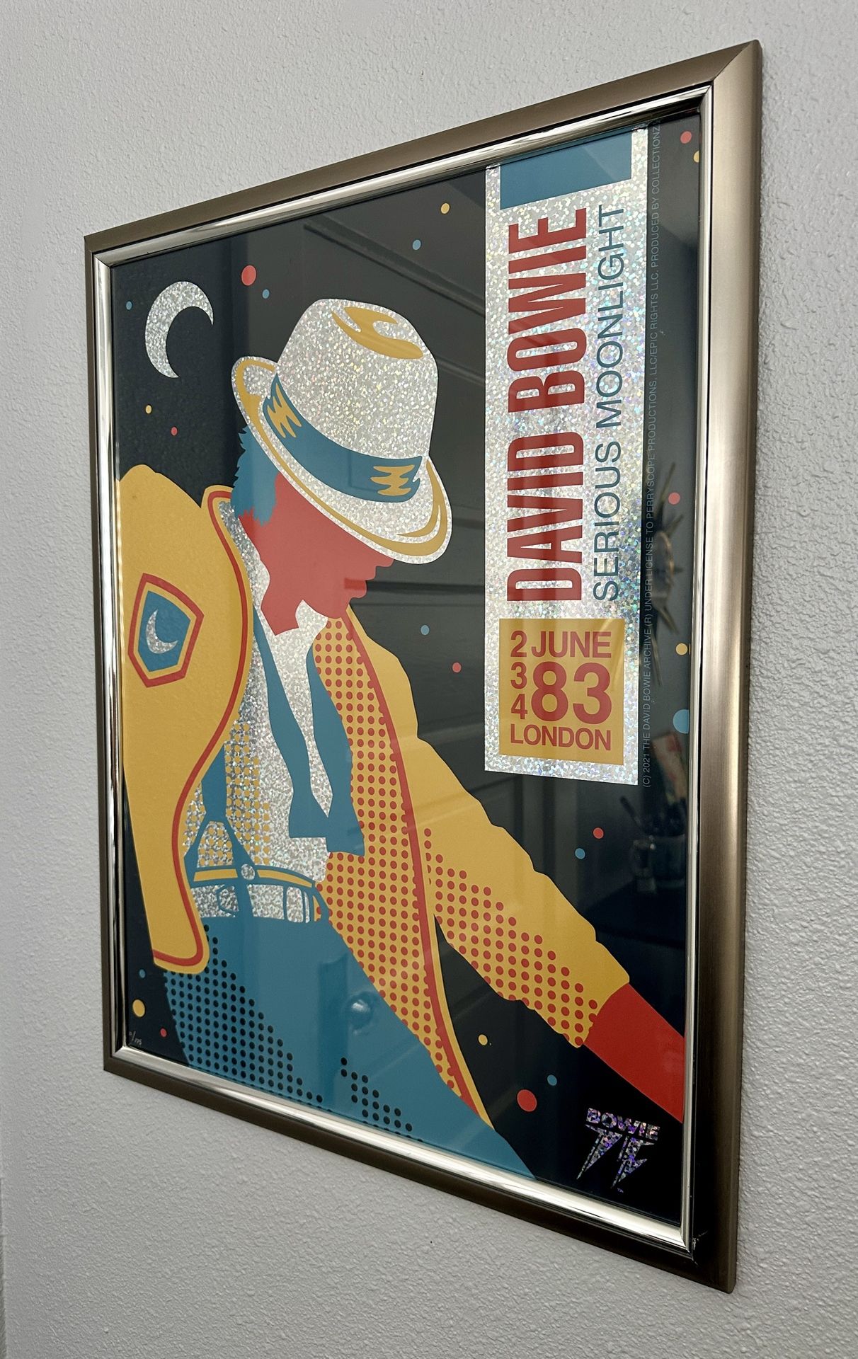 Rare commemorative foil David Bowie poster from his shows in London, June 1983. 20” x 26” framed. Great condition. Limited and rare. This is 11 of only 175 made. $250 Local pick up only.