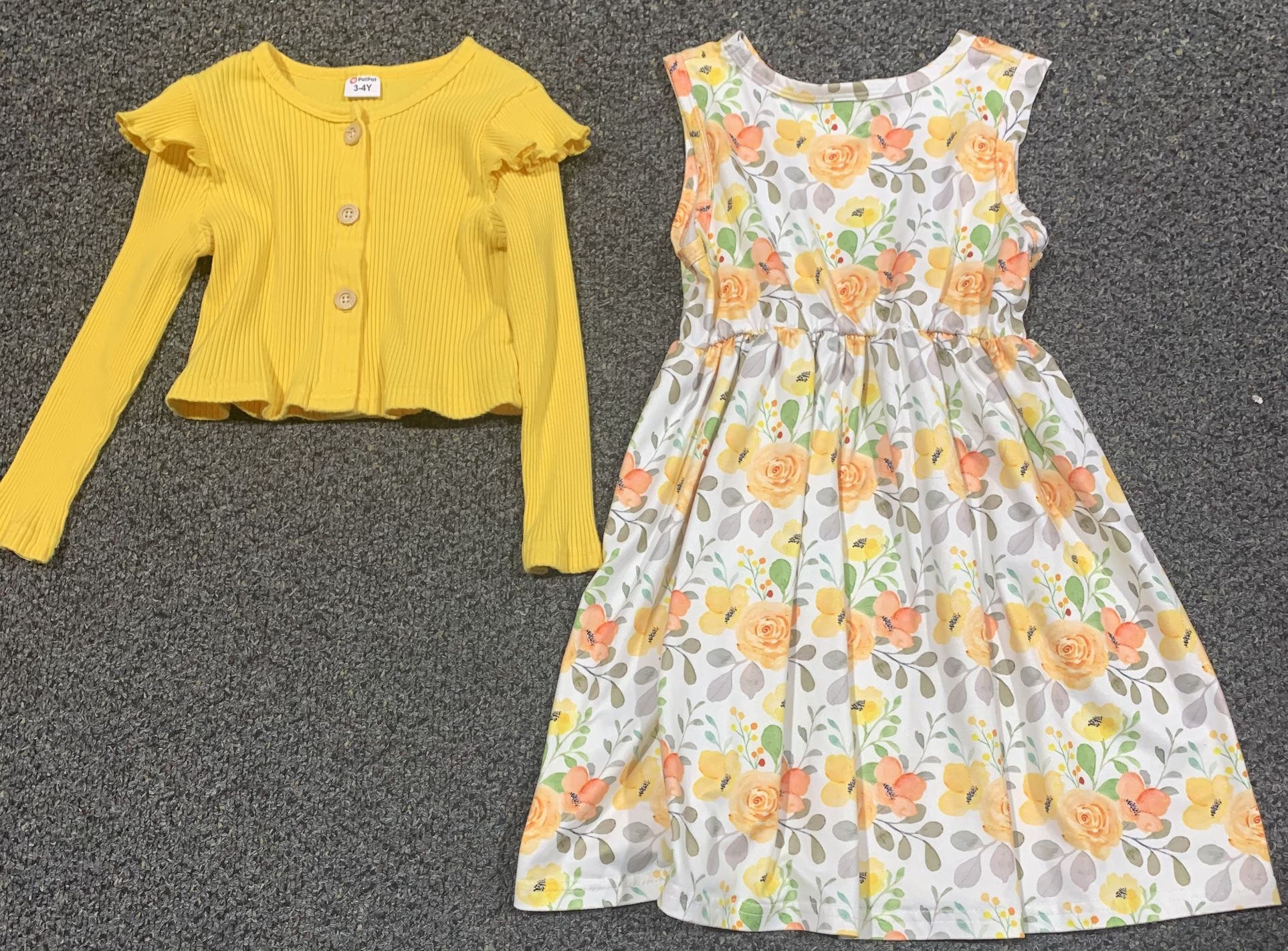 PatPat girls size 3 / 4 floral dress and matching yellow cardigan - perfect for Easter