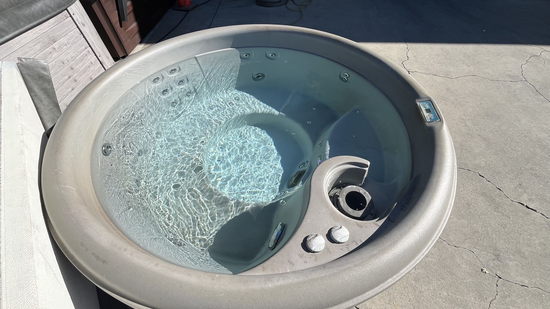 Used Aquaterra Newporter Spa hot tub $2,500.00 cash or Venmo Pickup in Livermore Filled and running 110v or 220v convertible Used cover 78” round x 33”h Seats 5 Light