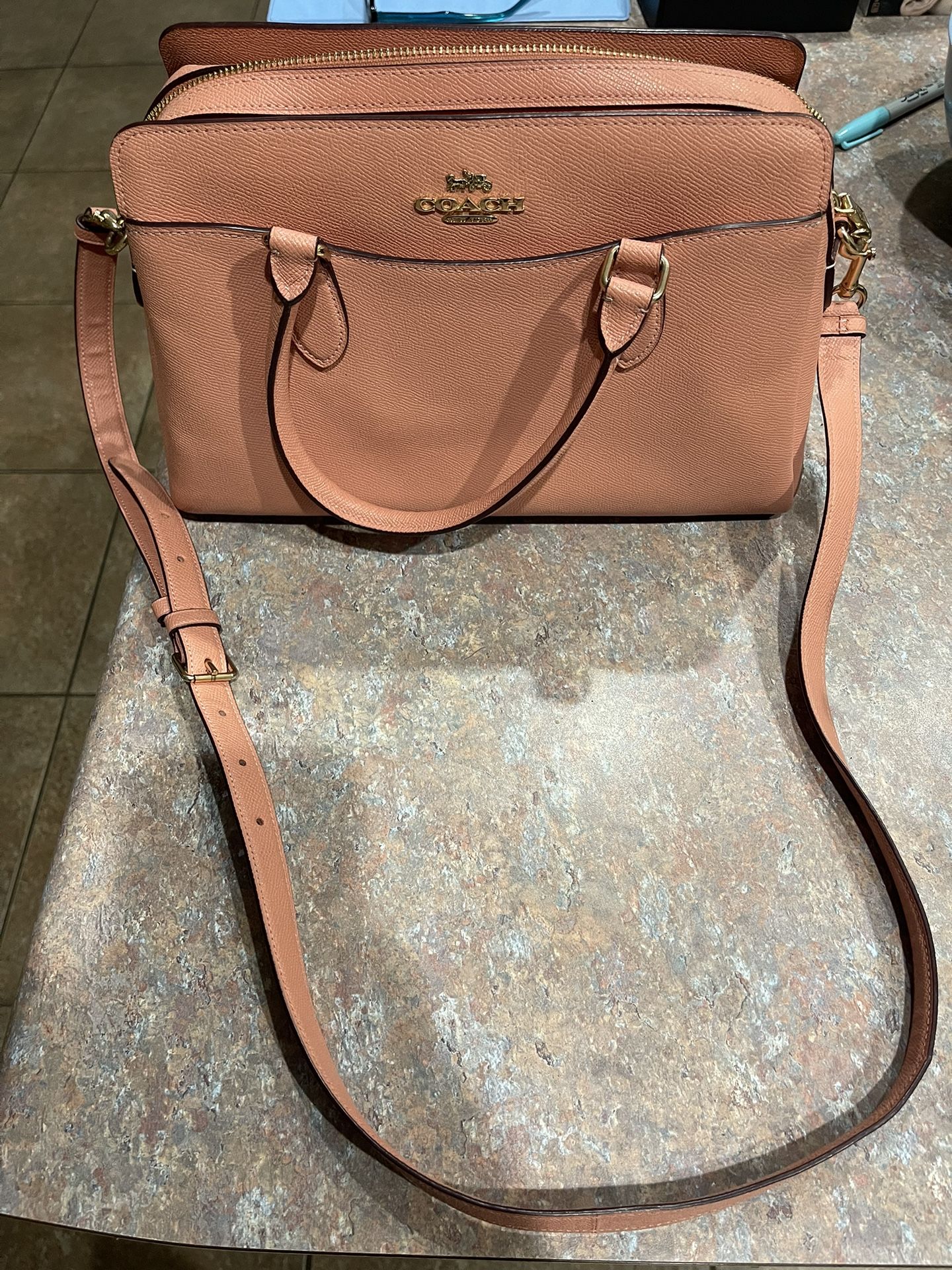 Darcie carryall coach purse in rare color orange. Only used a couple times, in great shape, no damage all zippers and clasps and straps work perfectly.