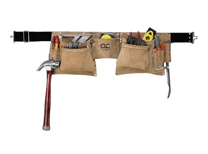 Heavy Duty Contractor-Grade Suede Leather Work Apron, 2 Steel Hammer Loops, 12 Pockets, Tan
