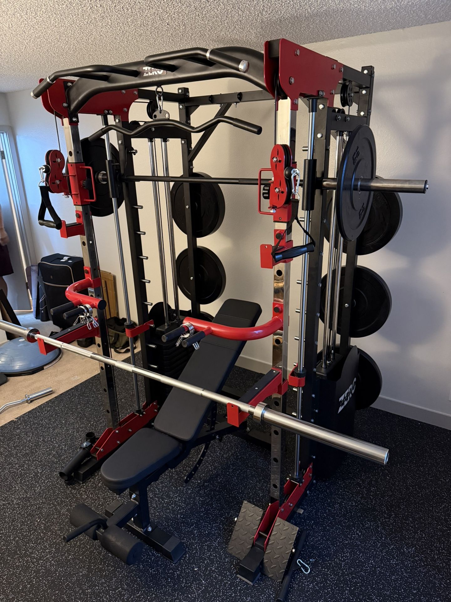Smith Machine 200 | Adjustable Bench | 245lb Cast Iron Olympic Weights | 7ft Olympic Bar | Fitness | Gym Equipment | FREE DELIVERY/INSTALLATION 🚚 🛠️