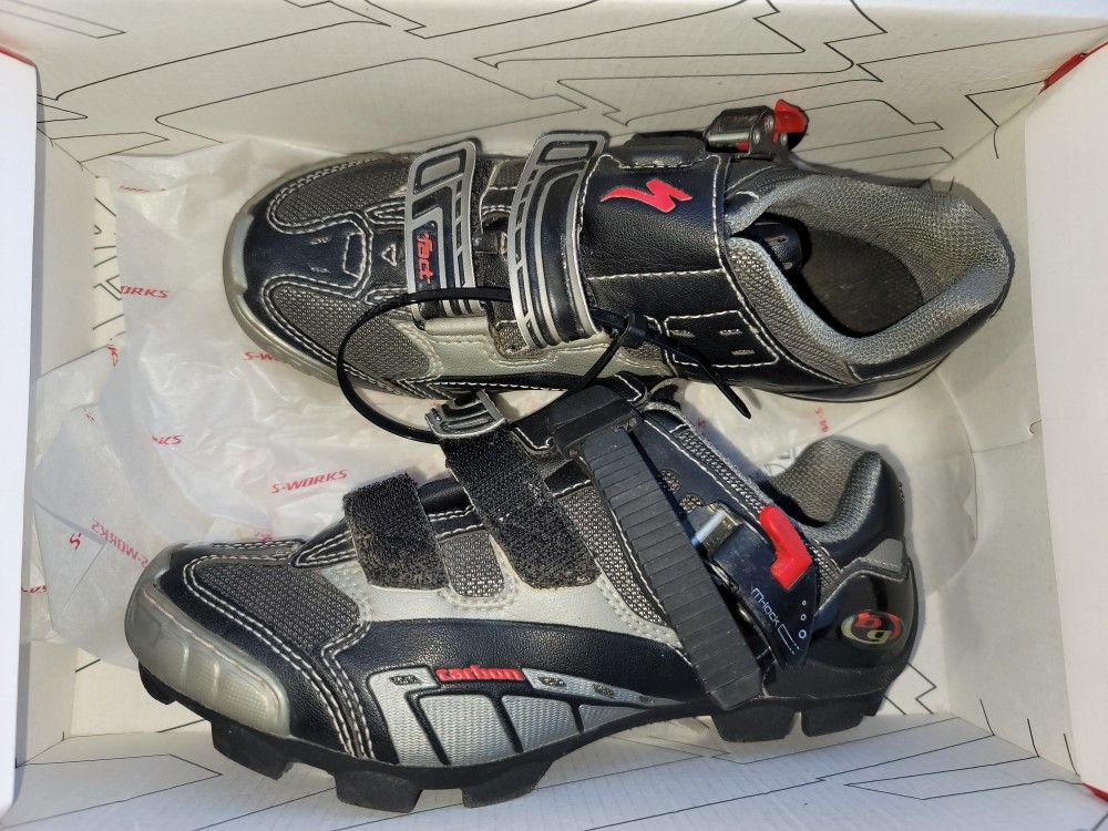 We are trying to clear out our storage unit of bikes and bike parts. We have a few pairs of shoes that we bought that ended up not fitting. This listing is for a pair of women's Specialized Body Geometry mountain bike shoes in size 36 EU / 4.5 US. The soles are FACT carbon fiber. They were $225 new and have seen almost no use. Asking only $75 or best offer. See our other listings for more shoes, parts, and bikes.