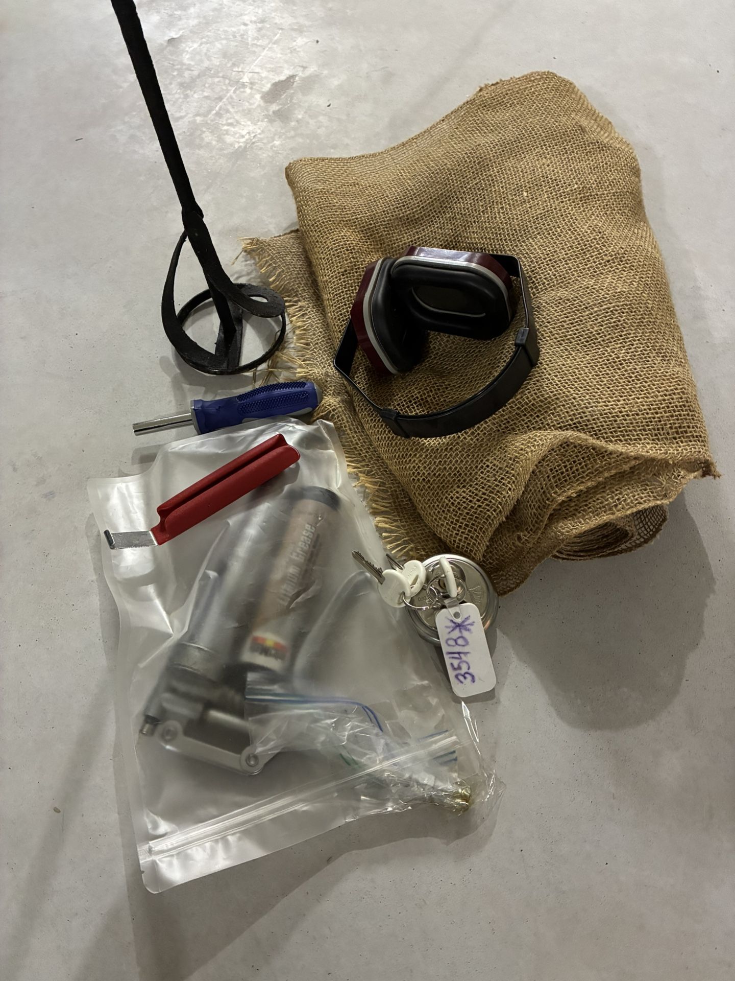 Paint stirrer, grease gun, lock, siding tool, burlap , hearing protector, tool handle. All above everything $5.00.