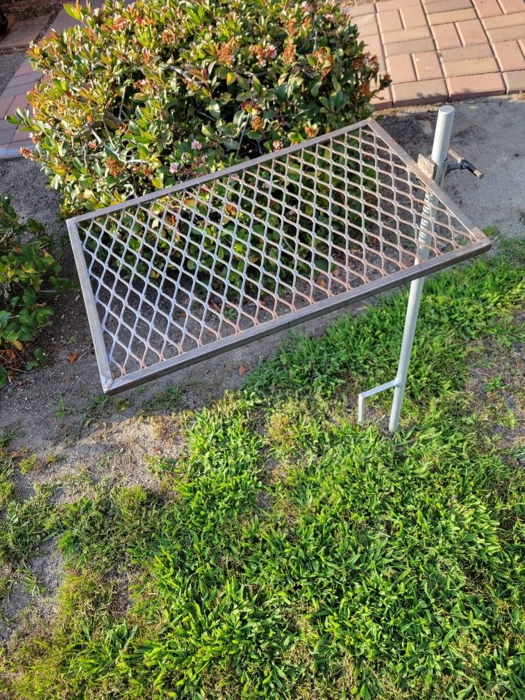 Portable grill to camp or backyard grilling. Small and compact. Zoom in on pictures for measurements. Good for steaks and small skillets.